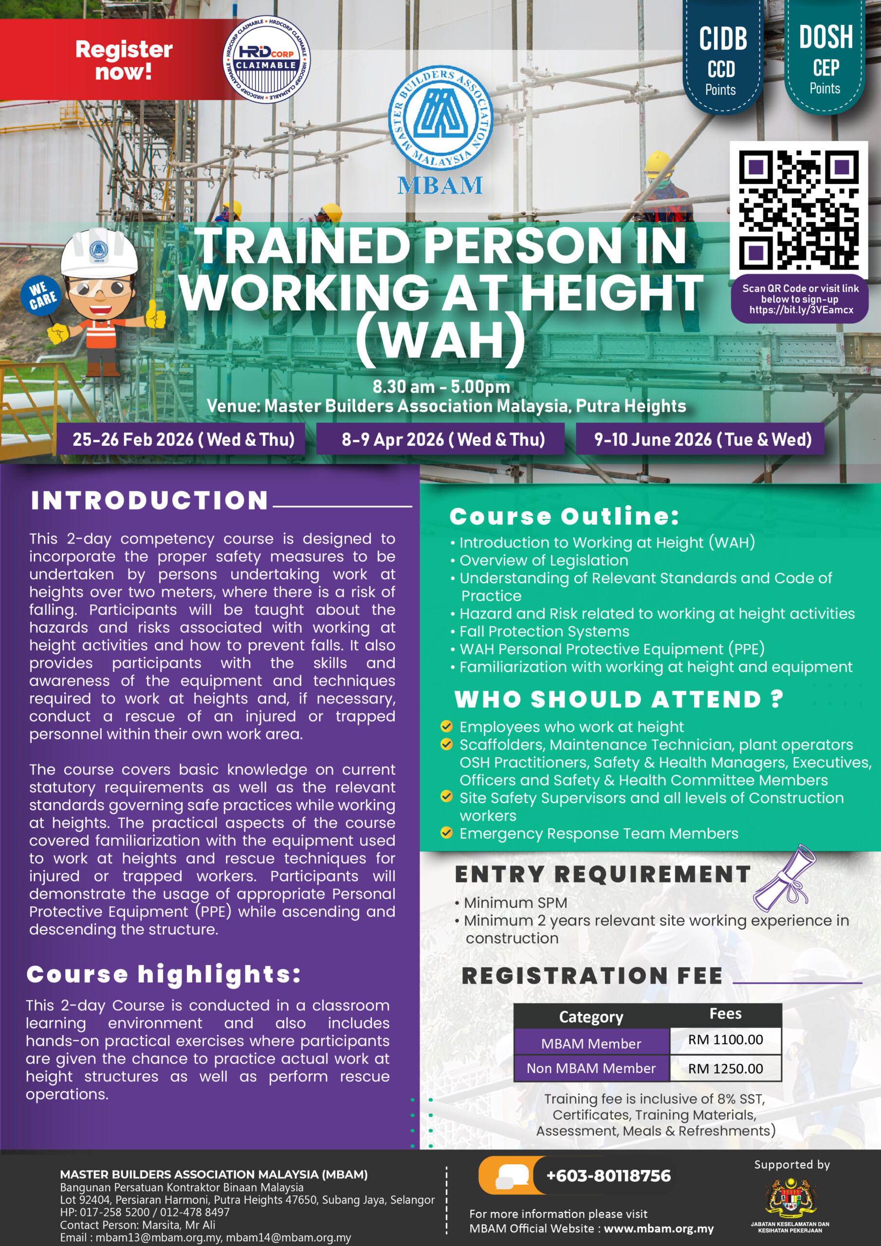 This 2-day Course is conducted in a classroom learning environment and also includes hands-on practical exercises where participants are given the chance to practice actual work at height structures as well as perform rescue operations.